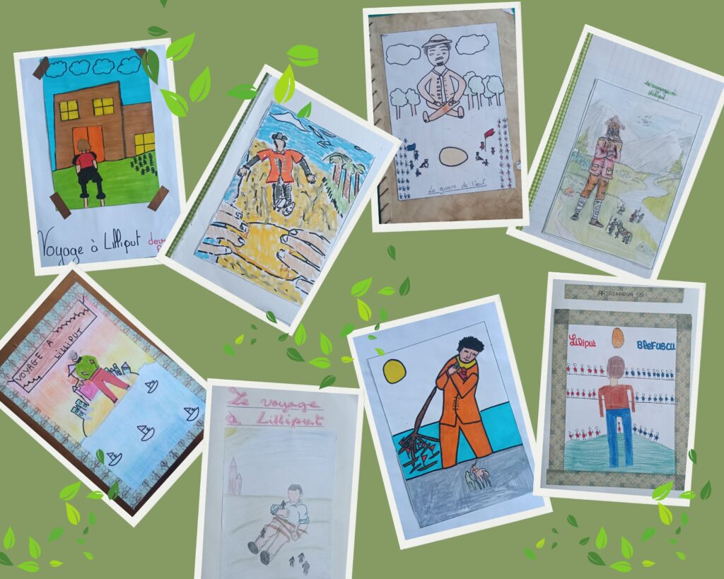 Les élèves de 5ème B et C ont travaillé autour de la lecture du Voyage à Lilliput de Jonathan Swift. Durant près de trois semaines, ils ont lu l’ouvrage en classe. Pour faciliter la lecture, un travail a été mené chapitre par chapitre, avec recherche du vocabulaire et explication des passages les plus compliqués.